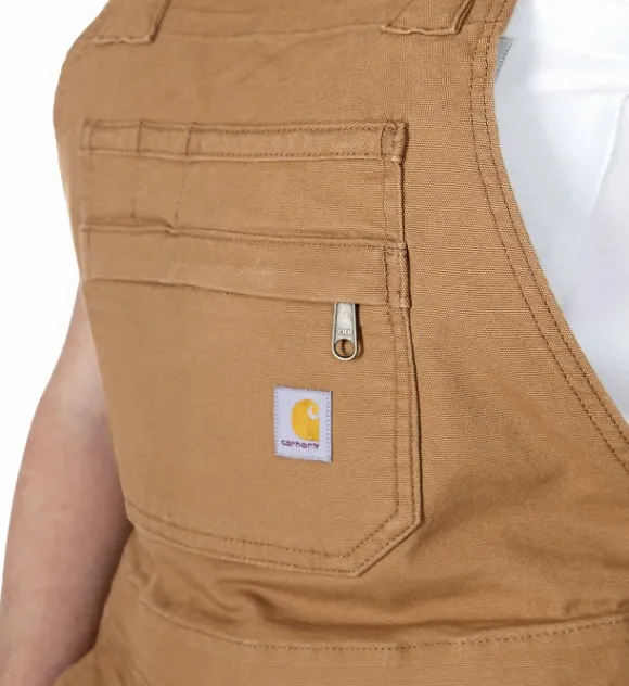 Carhartt Canvas Shortall naisille on lappuvaikutteiset shortsit, joissa on henkselit, jotka sopivat erinomaisesti kovaan työhön kuumina päivinä.