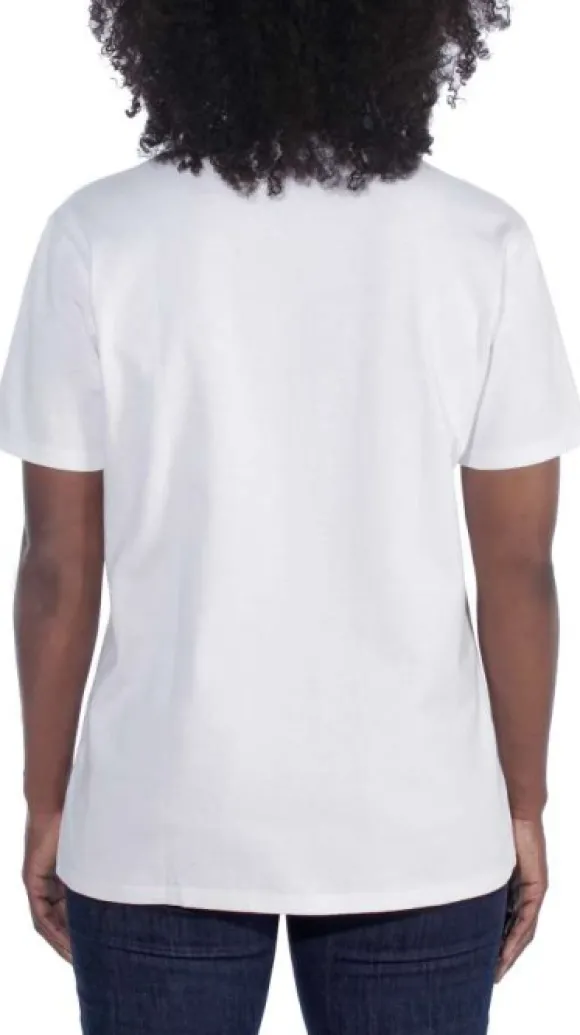 T-paita puuvillasekoitetta, joka sopii yhtä hyvin arkeen kuin työpajaankin. T-paidassa on neulottu kaulus, rintatasku vasemmalla puolella, Carhartt-logo edessä ja vakaa sauma villapaidan sivulla, joka ylläpitää paidan muotoa.