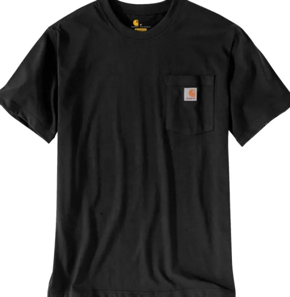 T-paita puuvillasekoitetta, joka sopii yhtä hyvin jokapäiväiseen elämään kuin työpajaankin. T-paidassa on neulottu kaulus, rintatasku vasemmalla puolella, Carhartt-logo edessä ja vakaa sauma villapaidan sivulla, joka ylläpitää paidan muotoa.