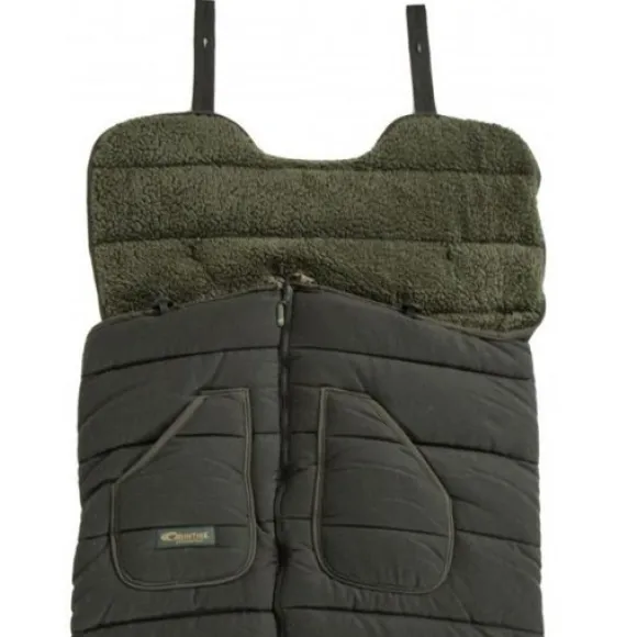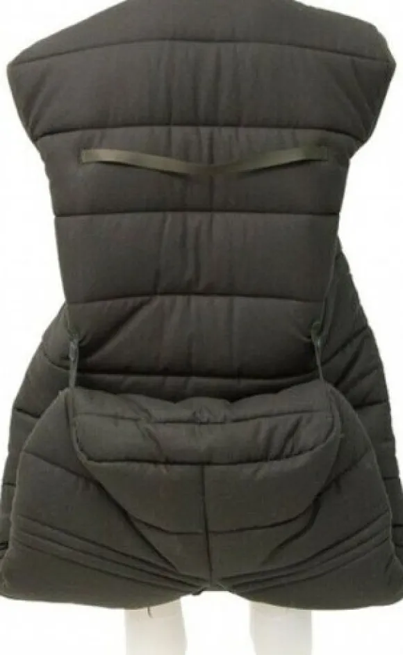 Nopea laittaa päälle ja ottaa pois keskelle sijoitettujen vetoketjujen avulla. Voit myös pitää passipussin päällä, kun vaihdat asentoa ja liikut avaamalla jalkopään, taitamalla sen ylös ja kiinnittämällä jalkaosan pussin takaosaan. Tällä tavalla voit liikkua vapaasti ilman, että sinun täytyy riisua pussia päältäsi.