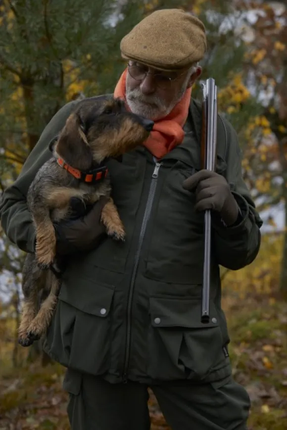 Hamilton GTX -takki on erittäin hiljainen metsästystakki tuulen- ja vedenkestävällä GORE-TEX®-kalvolla. Hamilton-takissa on korkea vesipilariarvo, jonka ansiosta koko takki on vedenkestävä ja samalla hyvin hengittävä. Kalvo on takana irrallaan pehmeän ja vahvan polyamidista valmistetun päälliskankaan päällä. Materiaalin ansiosta takissa pystyy liikkumaan äänettömästi maastossa. Tässä kuoritakissa on irrotettava ja säädettävä huppu, joka on kiinnitetty vetoketjulla. Takissa on paljon taskuja, kuten kaksi radiopuhelintaskua ja kaksi pystysuuntaista rintataskua, joista vasemmanpuoleisessa on lisäksi turvatasku sisäpuolella. YKK-vetoketju edessä on vettä hylkivä. Paljetaskujen kannen voi kiinnittää vyötärökaarrokkeeseen siten, että pääset helposti taskuihin. Säädettävä vyötärö ja helma. Kaksi suurta verkkokankaista sisätaskua. Hamilton-takki ja -housut muodostavat yhdessä hiljaisen, tuulen- ja vedenpitävän sekä monikäyttöisen metsästyspuvun.