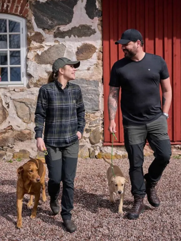 Näissä kevyissä ulkoiluhousuissa on reisitasku, jonka sisällä on erillinen tasku puhelimelle. Tasku suljetaan vetoketjulla.