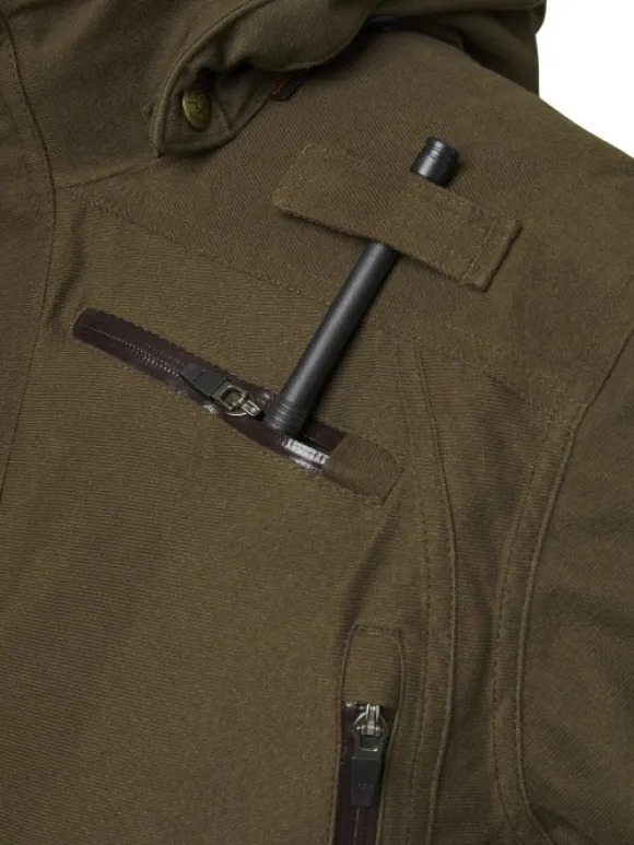 Chevalier Pointer Pro 2.0 -metsästystakki yhdistää tyylin toiminnallisuuteen. Lukuisat kätevät taskut auttavat pitämään tavarat järjestyksessä. Takissa on kaksi paljetaskua, joissa on panospidikkeet, kaksi radiotaskua, puhelintasku, GPS-tasku, povitasku ja Napoleon-tasku. Tilavassa selkätaskussa voi säilyttää kaikenlaisia tarvikkeita termospullosta kevyisiin vaihtovaatteisiin. Kädet pysyvät lämpiminä lämmittelytaskuissa.
