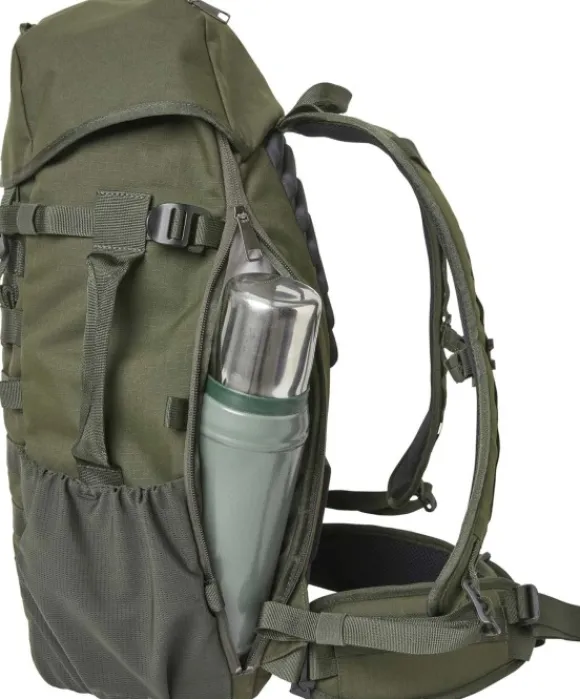 Ranger Day Pack on hyvin suunniteltu metsästysreppu, jossa on monia teknisiä yksityiskohtia. Sopii lyhyemmälle metsäretkelle tai hieman pidemmälle, jopa kolmen päivän retkelle. Repussa on kolmella sivulla kantoa helpottavat kahvat ja minimalistiset olkahihnat helppoa kiväärin kiinnittämistä varten. Repun PALS-järjestelmän avulla voit helposti kiinnittää siihen lisävarusteita. Repussa on käytännöllinen kaksisuuntainen vetoketju. Sisäpuolella on useita taskuja, mukaan lukien paikka juomajärjestelmälle. Ulkopuolella on myös kaksi verkkotaskua tavaroiden säilyttämistä varten. Reppu on valmistettu vahvasta kierrätetystä polyamidikankaasta ja siinä on kolme erillistä hihnaa, joilla varusteita voidaan kiinnittää myös ulkopuolelle.