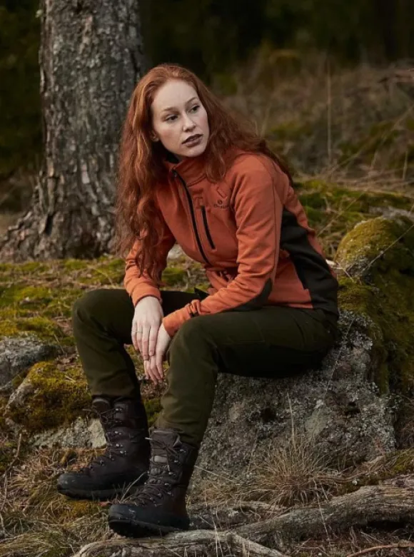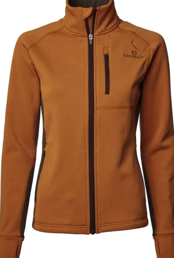 Italialaisesta, korkean teknologian Tecnostretch®-materiaalista valmistettu Chevalier Tay -fleecetakki naisille. Kevyessä materiaalissa on hyvä ilmanvaihto ja lämpöominaisuudet, ja sileät flatlock-saumat ehkäisevät hankaamista. Päältä sileä ja vahva Fleece-materiaali on sisäpuolelta pehmeää. Korkea kaulus pehmeällä leukasuojuksella ja hihansuissa peukaloreiät. Edessä kaksi tilavaa taskua, joissa on verkkokangas ilmanvaihdon parantamiseksi. Lisäksi takissa on antenniaukollinen rintatasku radiolle. Kaikissa taskuissa on vetoketjut. Takki on takaa hiukan pidempi, ja siinä on pukemista helpottavat raglan-hihat sekä kaksisuuntainen etuvetoketju. Kauluksen sisäpuolella, vetoketjuissa ja Chevalier-logossa on ruskea kontrastiväri.