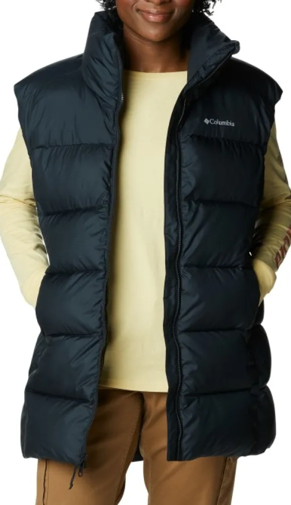 Columbian Puffect Mid Vest on pitkämallinen eristetty liivi, suunniteltu tarjoamaan sekä lämpöä että tyylikkyyttä esimerkiksi after ski -tilanteisiin, talvivaelluksille tai kaupunkipäivään.