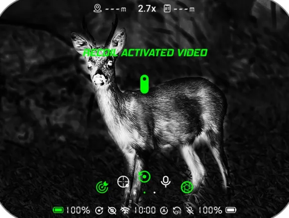 Rekyyliaktivoitu tallennus tallentaa 10 sekuntia ennen ja 10 sekuntia jälkeen laukauksesi, joten et menetä metsästyskokemustasi! Voit tietysti valita tallentaa äänen kanssa.
