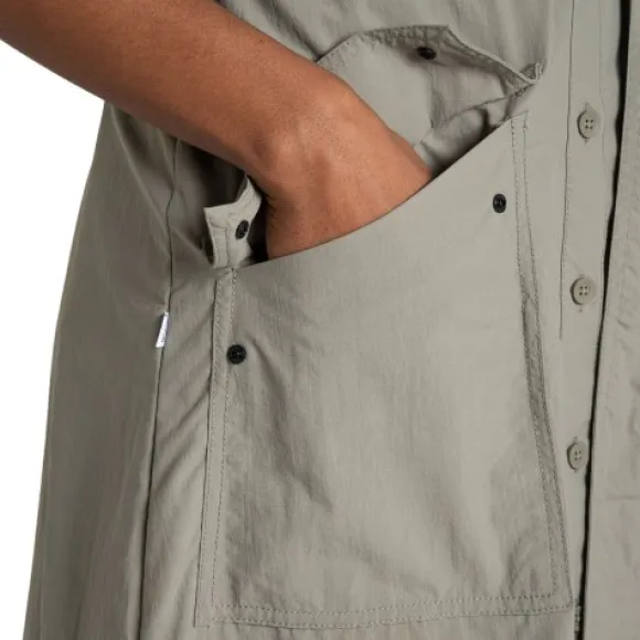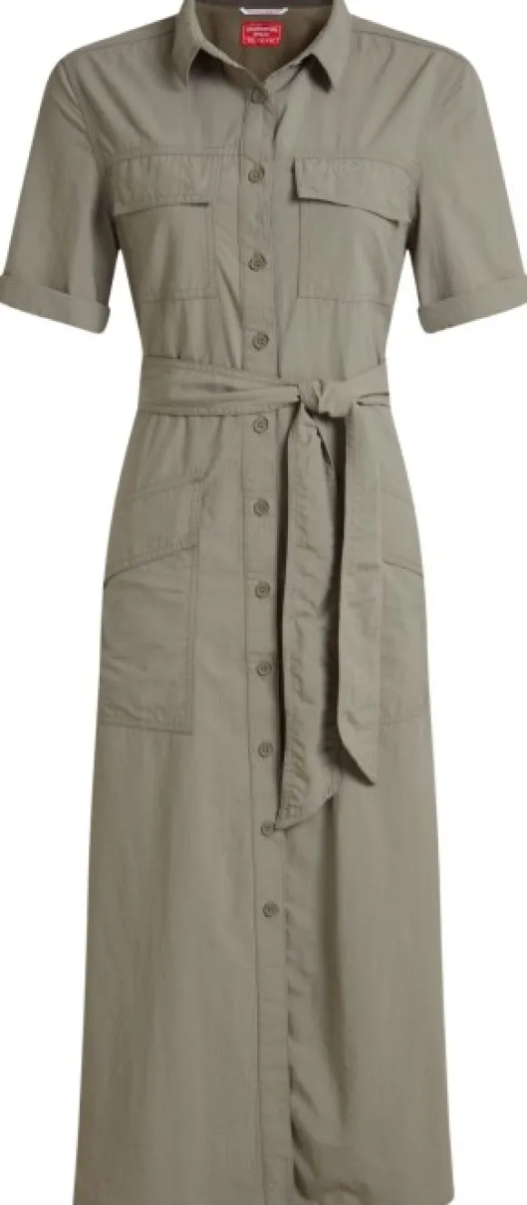 Craghoppers NosiLife Carina Adventure Dress on valmistettu kestävästä ja nopeasti kuivuvasta ripstop-kankaasta. Klassinen tyyli – etunapitus ja pidempi malli – tekevät siitä täydellisen valinnan pitkille seikkailuille ja matkoille. Mekossa on myös solmuvyö ja viisi taskua.