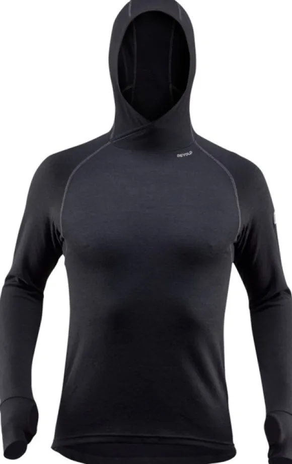 Devold Expedition Man Hoodie on kaksikerroksinen aluskerrastopusero, jolla on poikkeuksellisen hyvä eristyskyky sekä ainutlatuiset kosteudensiirto-ominaisuudet. Hupparin sisäpuoli on valmistettu yksinomaan merinovillasta, kun taas ulkopuolen valmistuksessa on käytetty 90 % kosteuskäsiteltyä merinovillaa ja 10 % polyamidia, joka lisää kankaan kestävyyttä. Ulomman kerroksen kosteuskäsittely tehostaa kosteuden imeytymistä kehosta, jolloin kosteus pääsee haihtumaan nopeammin.