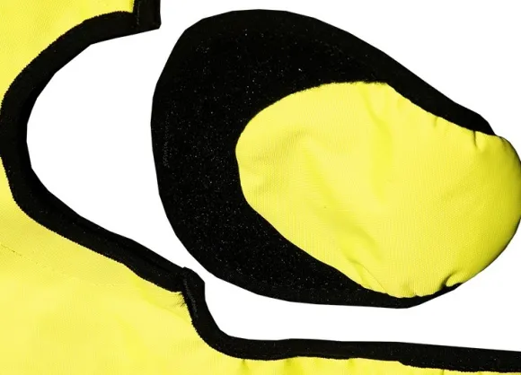 Modulaarinen suojaliivi, joka täyttää Agria-omavastuuvakuutuksen ehdot. Signaalivärinen perusliivi toimitetaan kellukkeilla.