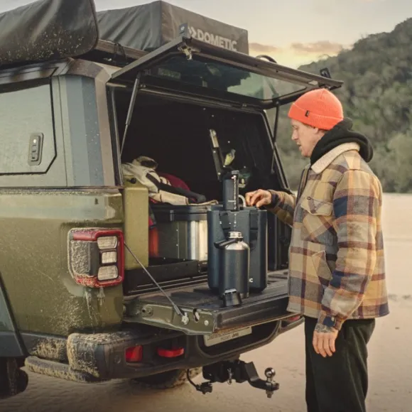 Hyvästit kertakäyttöisille pulloille Dometic Hydration -vesisäiliön kanssa. Se on suunniteltu olemaan helppo kantaa, täyttää, annostella ja puhdistaa.
