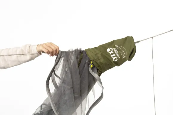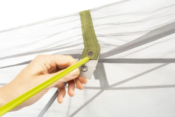 - Ridge Line ja levitystangot pitävät hyttysverkkoa ylhäällä