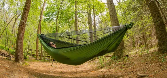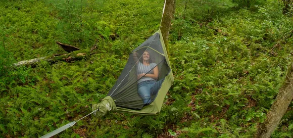 Enon päivitetyssä JungleNest -riippumatossa yhdistyvät tilava riippumatto sekä käytännöllinen hyönteisverkko, jossa on molemmilla puolilla vetketjulliset oviaukot. Verkko voidaan tarvittaessa myös irroittaa ja sijoittaa pieneen pussiin. JungleNest on kevyt ja helposti pakattavissa pakkauspussiinsa.