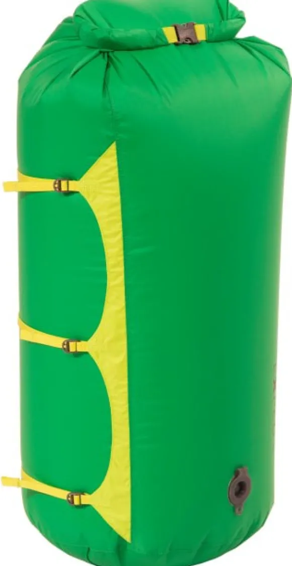 Exped Waterproof Compression Bag on vedenpitävä pakkauspussi, jossa on ilmaventtiili sekä vertikaaliset kompressioremmit. Pakkauspussin avulla tavarat on helppo pakata tiiviisti reppuun, ja ilmaventtiilin sekä säädettävien remmien avulla tiivistys käy kätevästi. Pussin yläosassa on kätevä rullasulku, jota voi käyttää kädensijana tai kiinnityslenkkinä. Kompressiopussi toimii myös Exped-makuualustan pumppuna yhdessä Schnozzelin kanssa.