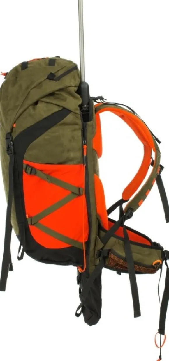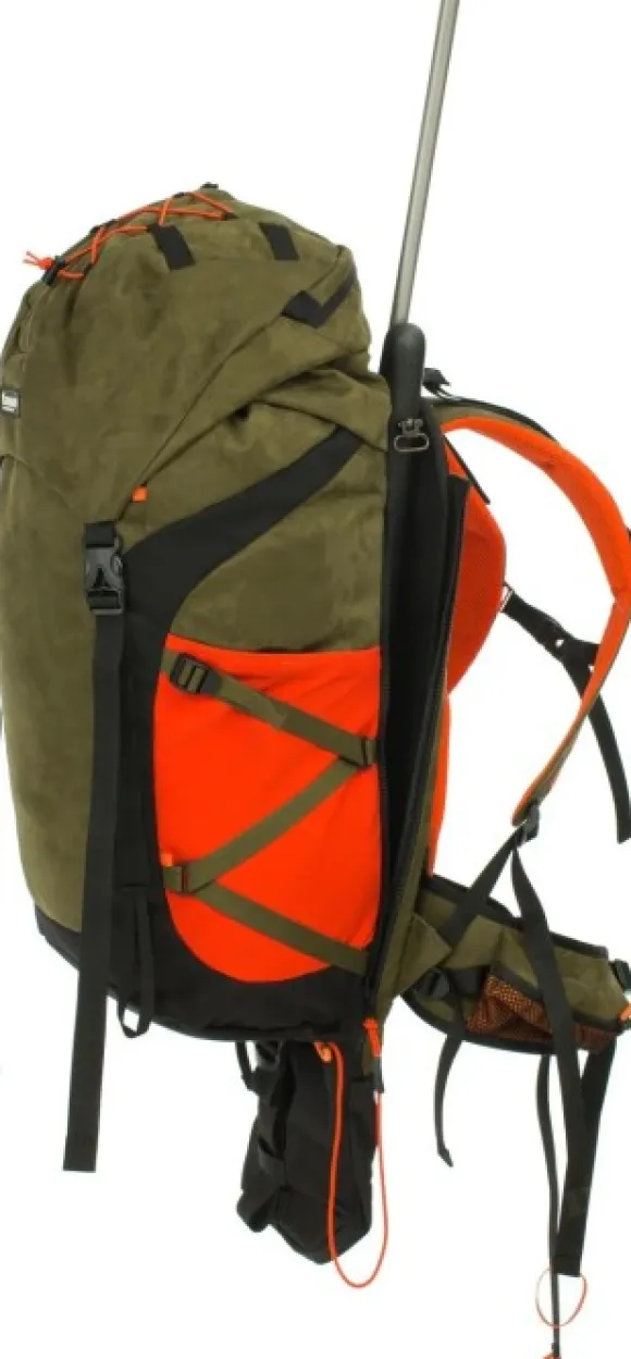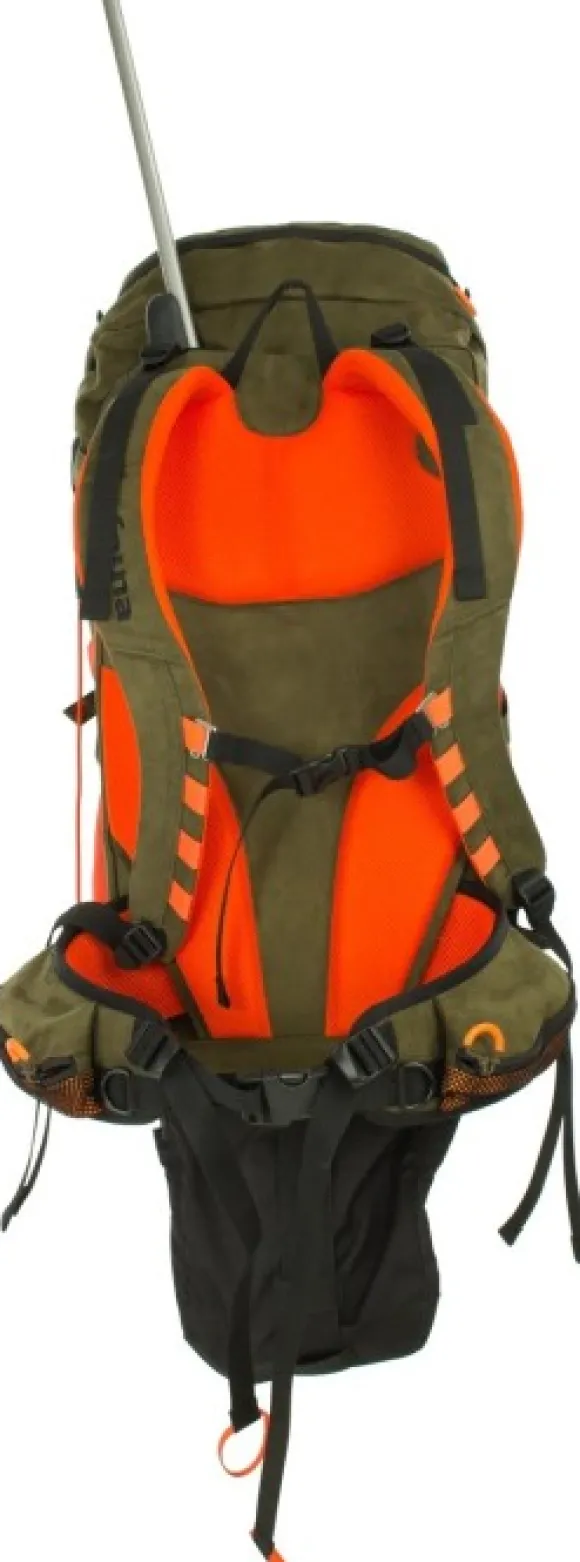 Fauna FH 45 -reppu on täysin varusteltu metsästystä varten. Tilavassa repussa on aseille oma kantojärjestelmä.
