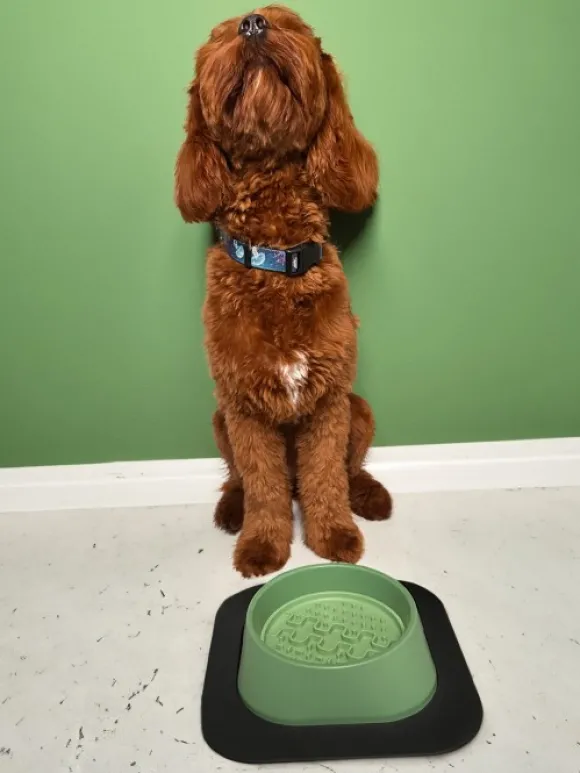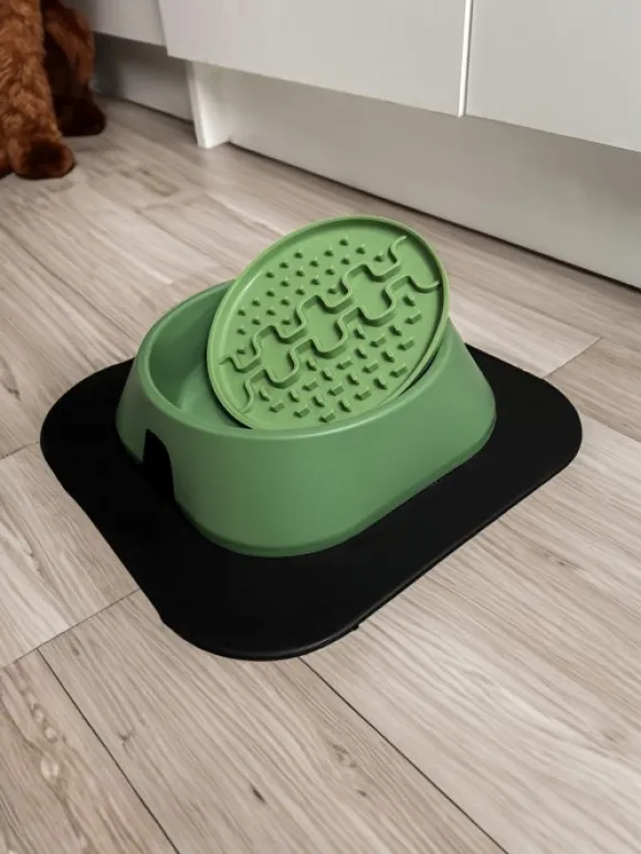 Koiran kupissa on liukumattomat silikonijalat (toimitetaan pussissa kulhon alla).
