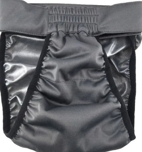 Tässä mallissa on edelleen leveä vyötärönauha (ilman röyhelöitä) ja tarrakiinnitys, joka avautuu molemmilta puolilta tehden niiden pukemisesta helppoa. Hännänaukko on suunniteltu sopimaan sekä pitkille että pitkäkarvaisille hännille.