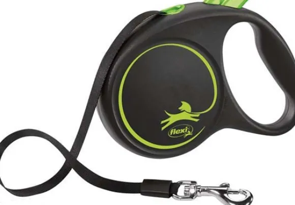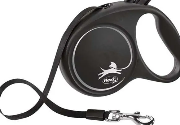 Kelatalutin, jonka nauhan pituus on säädettävä. Talutinta on mahdollista täydentää Flexi Multi Box -kakkapussikotelolla.