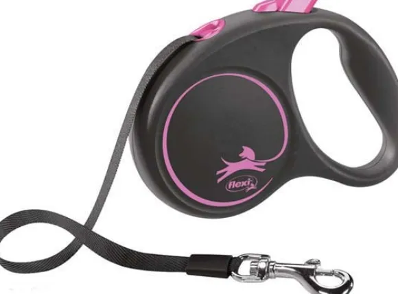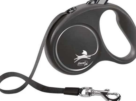 Kelatalutin, jonka nauhan pituus on säädettävä. Talutinta on mahdollista täydentää Flexi Multi Box -kakkapussikotelolla.