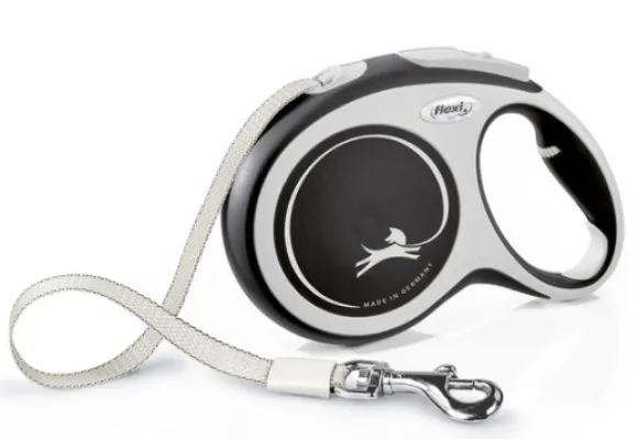 Flexi New Comfort on päivitetty versio Flexin kelataluttimesta paremmalla jarrumekanismilla. Vakaa kahvaosa on säädettävissä taluttajan kädelle sopivaksi. Hihna kelautuu nopeasti takaisin sisälle. Yhteensopiva Multi Box ja LED Lightning System -lisävarusteiden kanssa