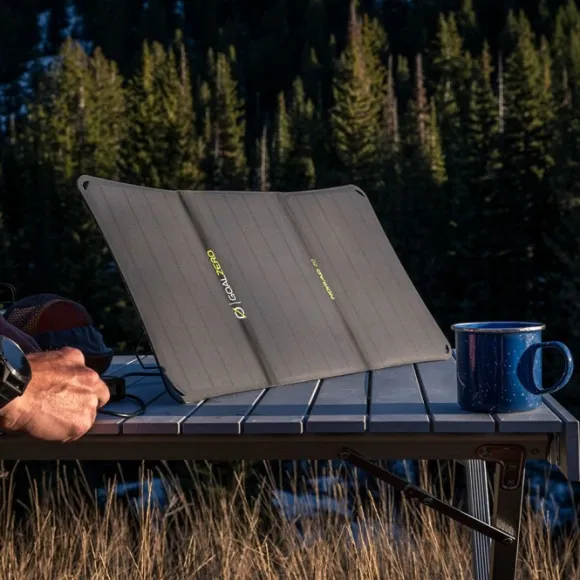 Nomad 20 aurinkopaneelin avulla lataat elektroniset laitteesi kätevästi aurinkoenergian avulla. Tämä kätevä aurinkopaneeli on kokoontaitettavissa tilan säästämisen vuoksi. Sisältää taittuvan telineen, joka pitää paneelin optimaalisessa kulmassa aurinkoenergian keräämistä varten. Lataa pienet mobiililaitteet kytkemällä latausjohto paneelin USB porttiin ja toinen pää ladattavaan laitteeseen. Laitteen mukana tulee 8 cm johto, jonka avulla voit kytkeä useamman aurinkopaneelin yhteen.