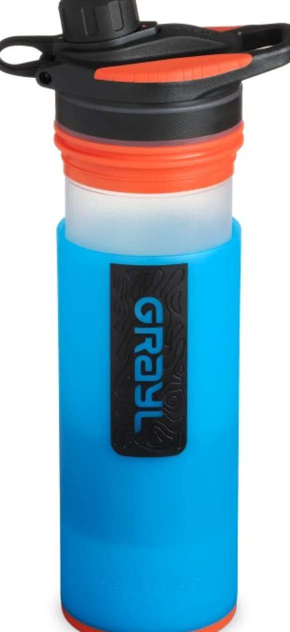 Graylin Geopress™ Purifier on pullo, joka puhdistaa ja suodattaa vettä. Pullo puhdistaa veden vedessä leviävistä taudinaiheuttajista (kuten viruksista ja bakteereista) ja suodattaa pois hiukkaset, kuten sedimentin ja mikromuovin. Harvat vettä puhdistavat pullot voivat kilpailla GeoPressin nopeuden, yksinkertaisuuden ja tehokkuuden kanssa! Vain kahdeksassa sekunnissa se puhdistaa ja suodattaa 710 ml vettä.
