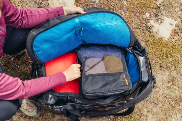- Laajennettava vetoketjutasku – pitää likaiset varusteet erillään päälokerosta