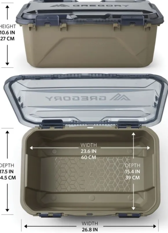 Gregory Alpaca Gear Box tarjoaa sekä veden- että pölytiiviin ja kestävän suojan irrotettavalla FlipFlop-saranakannella. Tämä käytännöllinen säilytyslaatikko on suunniteltu pitämään varusteesi kuivina ja suojattuina.