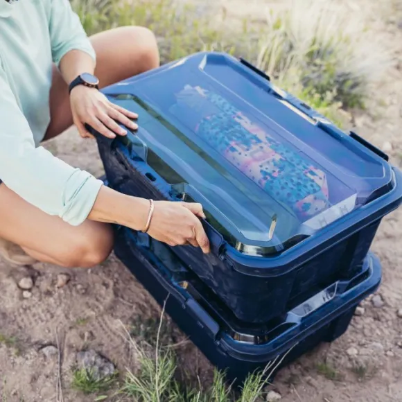 Käytännöllinen ja pinottava säilytyslaatikko, jossa läpinäkyvä kansi veden- ja pölytiiviiseen suojaan