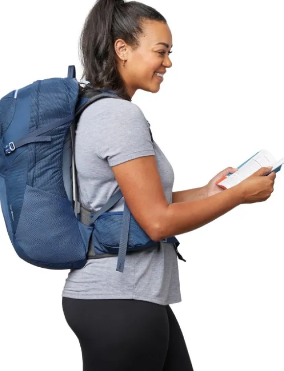 VaporSpan-kantojärjestelmä tarjoaa tuen erinomaisella ilmanvaihdolla sekä kosteutta siirtävän verkkomateriaalin. Lantiovyö on varustettu suurilla vetoketjullisilla taskuilla, joten sinun ei tarvitse ottaa reppua pois, kun haluat päästä käsiksi karttaan tai kännykkään. Ripusta aurinkolasit olkahihnaan, kun olet varjossa, tai pakkaa päällysvaatteet edessä olevaan kestävään verkkotaskuun kuumalla ilmalla. Erityisesti naisille suunniteltu malli.