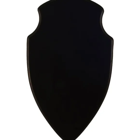 Tumma, tammesta valmistettu hirvitrofeen taustalevy. Mitat: 46 x 27 cm.