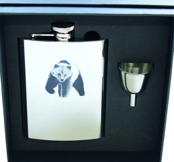 Taskumatin kanssa tulee kätevä suppilo, jotta täyttö olisi mahdollisimman helppoa. Taskumatissa on hieno painatus.
