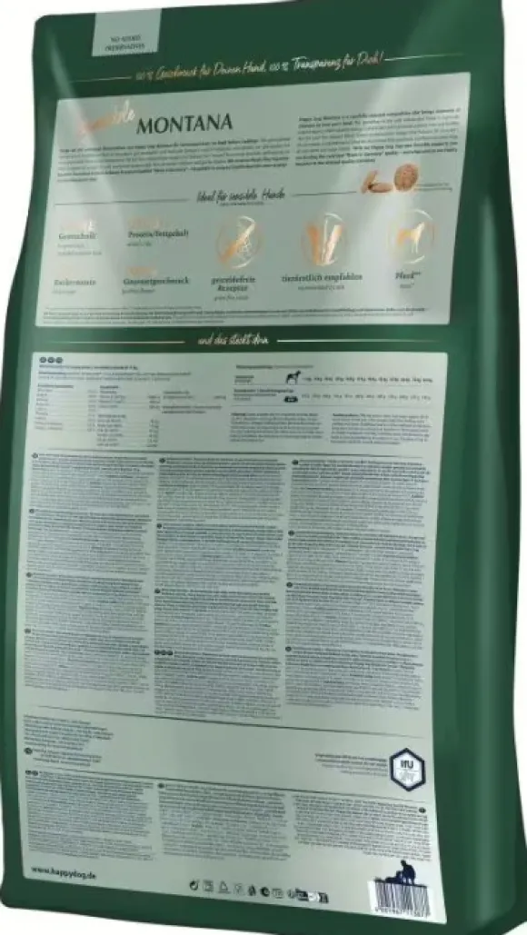 Poikkeuksellisen herkullinen super premium -laatuinen Happy Dog Montana -täysravinto sopii myös kaikille nirsoille aikuisille koirille, joiden paino on enintään 11 kg ja jotka kaipaavat vaihtelua tai ovat erittäin vaikeasti miellytettäviä.