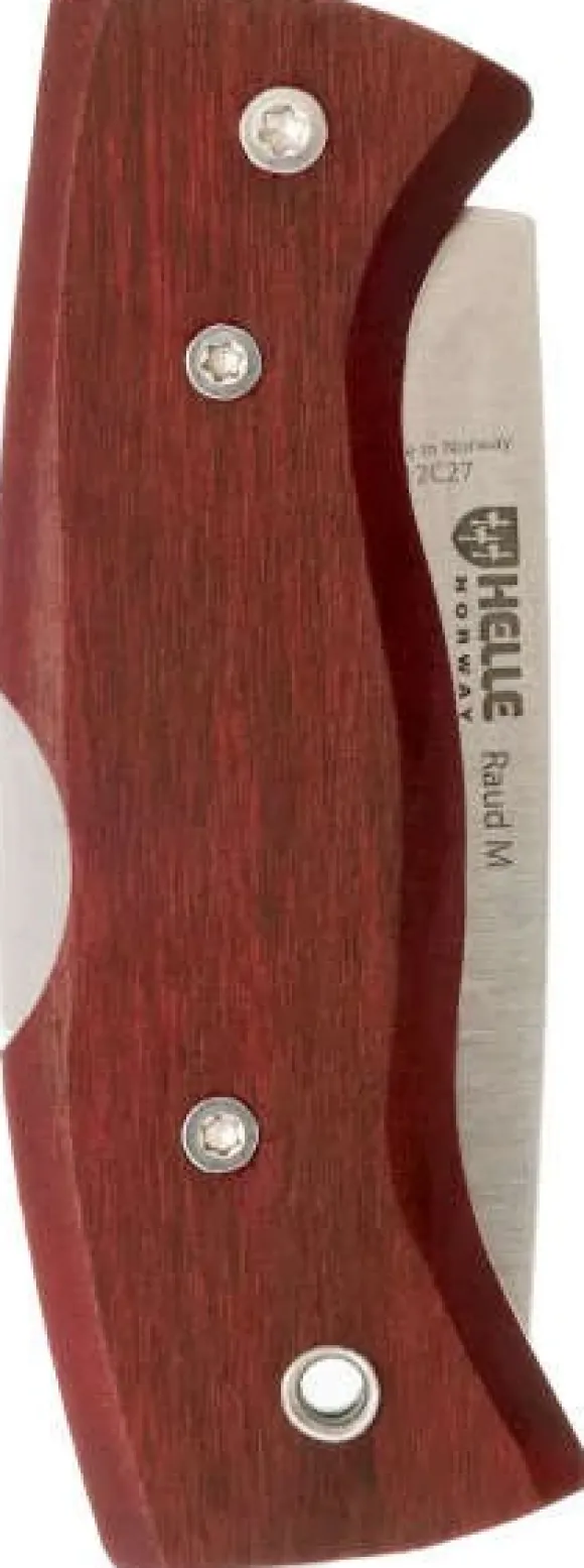 Raud yhdistää kevyen painon ja vankan rakenteen 2,7 mm paksuun terään. Veitsi on tarpeeksi pieni kuljetettavaksi taskussa, mutta tarpeeksi suuri kovaan työhön. Kahva on valmistettu syvän öljypunaisesta koivusta, ja se on juuri sopivan kokoinen kolmen sormen otteelle.