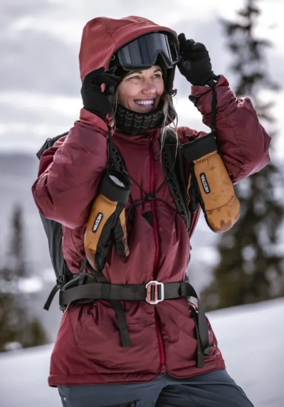 Rukkanen on ommeltu kestävästä vuohen- ja lehmännahasta*, ja siinä on esimuotoiltu leikkaus. Villafrotee- ja villafleecesisävuori tarjoaa lämpöä ja siirtää kosteutta, ja vuoren voi helposti poistaa pesua tai kuivausta varten.