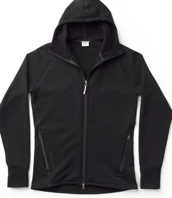 Tässä vaatteessa on hyvin muotoiltu huppu ja kaulus, joka suojaa ja lämmittää. Täyspitkä ja kaksisuuntainen vetoketju edessä helpottaa tuuletusta, jos tulee kuuma. Sopii kestävän ulkopintansa ansiosta hyvin kuorivaatteiden alle. Pidennetyissä hihoissa on peukaloaukot.