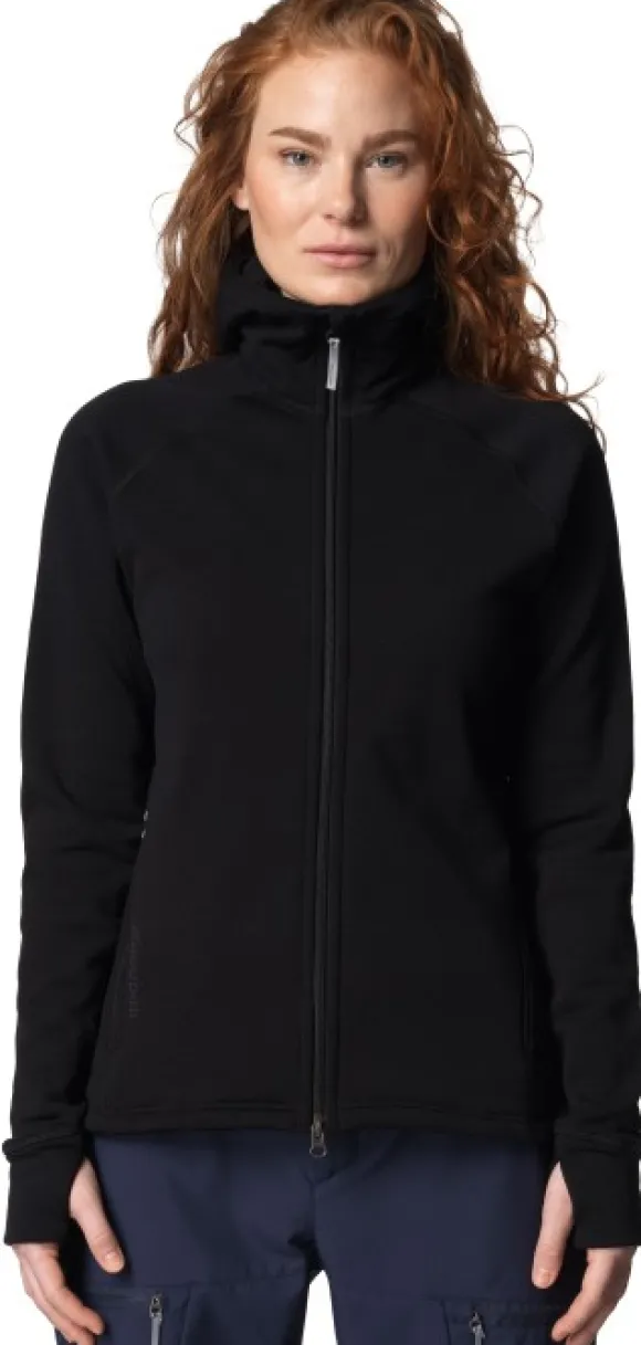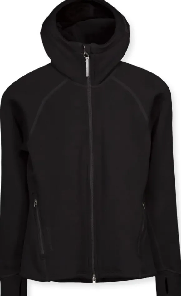 Käytä tätä vaatetta kuoritakin alla hiihtorinteessä tai sellaisenaan. Pitkät hihat peukaloaukkoineen pitävät kädet lämpiminä, ja korkea kaulus sekä tiukka huppu tarjoavat suojaa kylmällä säällä.