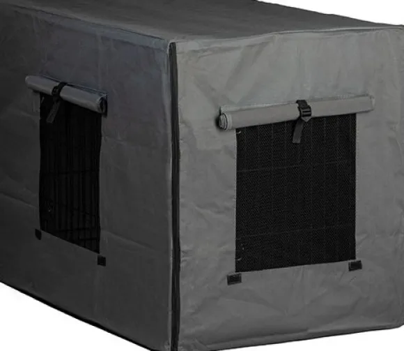 Vettä ja likaa hylkivä häkinpäällinen Hundra-metallihäkkiin. Häkinpäällisen avulla häkistä saa koiralle rauhallisen lepopaikan. Ulkotiloissa se antaa suojaa tuulelta, sateelta ja auringolta. Erinomainen lisävaruste esimerkiksi näyttelymatkoille. Verkkokankaiset ikkunaluukut voi tarvittaessa sulkea. Häkin ovipäädyn saa avoimeksi avaamalla vetoketjut. Päällinen on polyesteria ja kestää konepesun alhaisessa lämpötilassa. Koko XXL vastaa metallihäkin kokoa – valitse sama koko kuin häkissä.