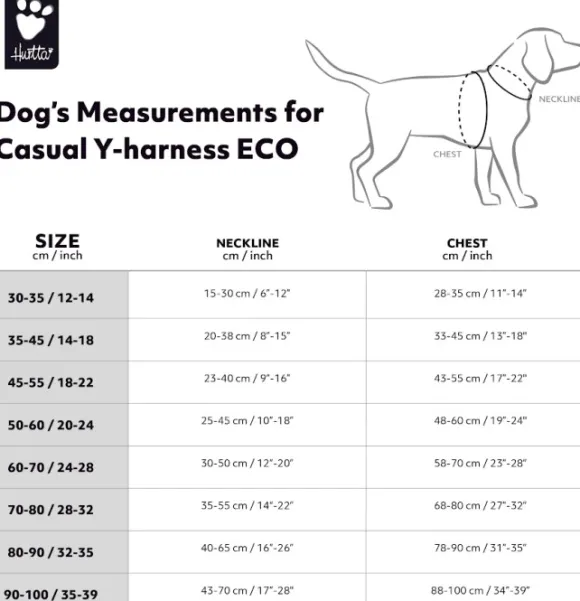 Hurtta Casual Y-Harness ECO -valjaiden tiedot:
