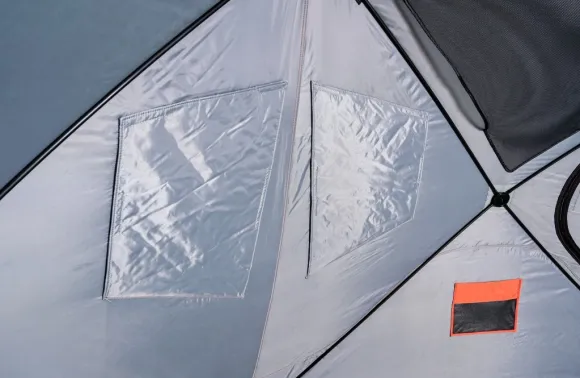 Teltassa on tilava 7,3 m² lattia-ala, joka tarjoaa runsaasti tilaa varusteille ja pakkauksille. Vaaleanharmaa sisäosa luo kirkkaamman ympäristön, kun ikkunat on peitetty, mutta mahdollistaa myös riittävän pimeyden haluttaessa.