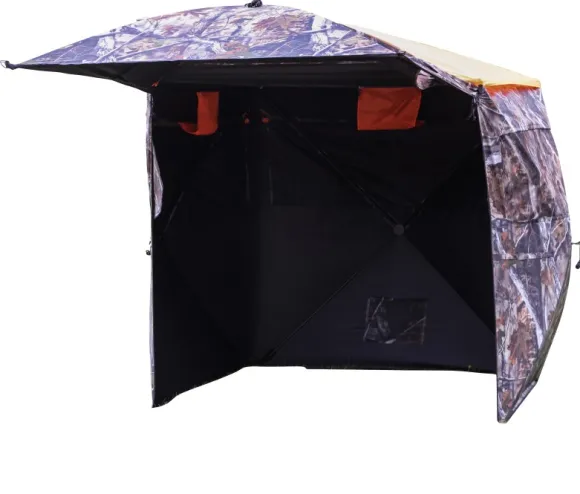 Ainutlaatuinen metsästysteltta/tuulensuoja on helppo pystyttää.
