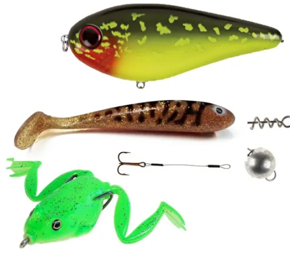 Paketti, jossa kolme huippu-uistinta hauelle. Guide on helposti kalastettava ja hitaasti uppoava jerkbait. Voidaan kalastaa perinteisen jerkbaitin tapaan, mutta se toimii myös hyvin nopeasti tai hitaasti vetämällä. Sammakko syötti, joka on uskomattoman tehokas hauen kalastukseen. Sammakon vartalon sisällä olevan piilokoukun ansiosta syötti ei tartu ruokoon ja muuhun kasvillisuuteen. Lisäksi kalssinen jigi "The Demon"
