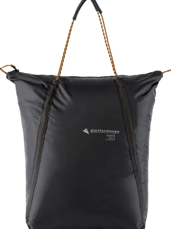 Gebo-laukussa on kaksi pehmustettua kantokahvaa, jotka on valmistettu 5 millimetrin köydestä, joiden avulla kassin voi myös puristaa kasaan tai ne voi vaihtoehtoisesti myös pidentää, jotta voit kantaa kassia olkapään ylitse. Laukun rip-stop-materiaali tekee laukusta kevyen sekä kestävän. Gebossa on sisäpuolella turvatasku, johon laukku on mahdollista myös pakata.