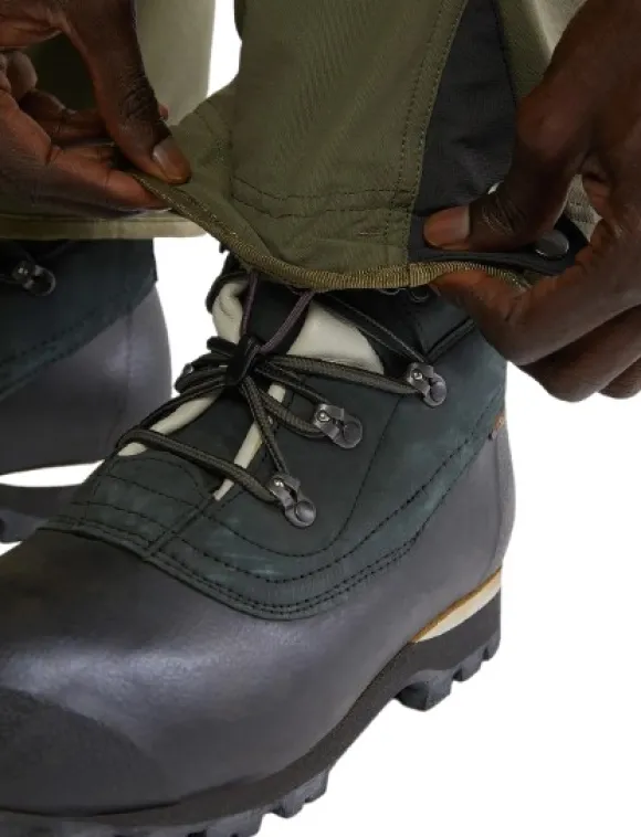 Lahkeissa on sisäpuolelta kaarevat saumat, muotoillut polvet ja vahvikkeet alareunassa, jotka voi kiinnittää kenkiin pienellä koukulla. Kaksi verkkovuorattua käsitaskua, kaksi reisitaskua. Yhdistettävissä Gaiter Kit -lisäosaan, jolloin lahkeet sulkeutuvat täysin.