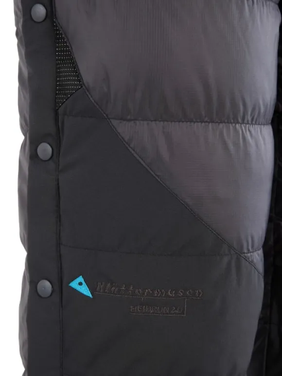 Heidrun 2.0 -toppashortsit on eristetty 800+ Fill Power -untuvalla, joka on RDS-sertifioitua ja täysin jäljitettävissä. Sivuilla olevat napit helpottavat housujen pukemista ja riisumista, eikä sinun tarvitse riisua monoja, kenkiä tai housujasi pukeaksesi shortsit jalkaasi. Päällyskangas on painoonsa nähden todella kestävää. Shortseissa on oleellisissa paikoissa vahvikkeet. Erinomainen vaihtoehto makuupussille kylminä öinä. Vyötärö on säädettävissä joustavan nyörin avulla. Mukana tulee pieni pakkauspussi, jotta saat shortsit kätevästi mukaasi. Kaikinpuolin Heidrun 2.0 -toppashortsit ovat kestävät, lämpimät ja pehmeät housut talvipakkasille.