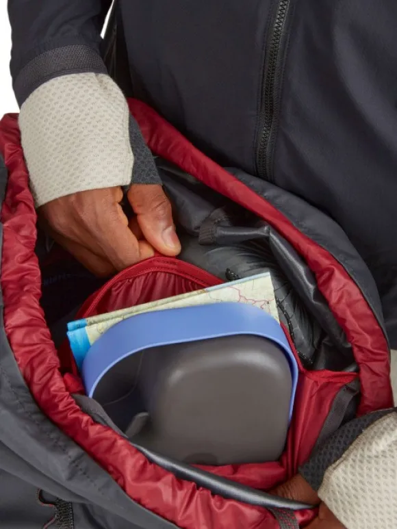 Reppu voidaan sulkea käytännöllisesti myös yhdellä kädellä ja se voidaan puristaa kompaktiin kokoon pienemmällä tavaramäärällä. Repun sisäpuolella on turvatasku lumivyöryvarusteille.