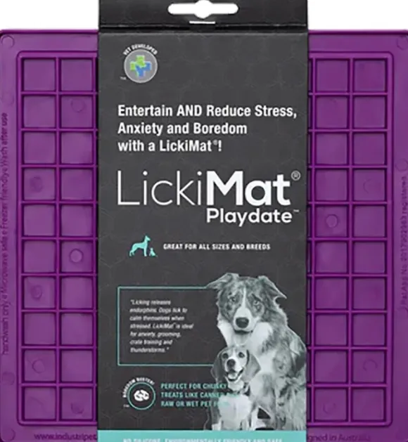 LickiMat® Playdate on kehitetty estämään tylsyyttä kissalla tai koiralla. Levitä lemmikin suosikkiruoka matolle, niin se saa etsiä sen kielellään. Nuoleminen rauhoittaa eläintä ja lisää makuaistia, sillä se saa nauttia ruuasta pienissä erissä.
