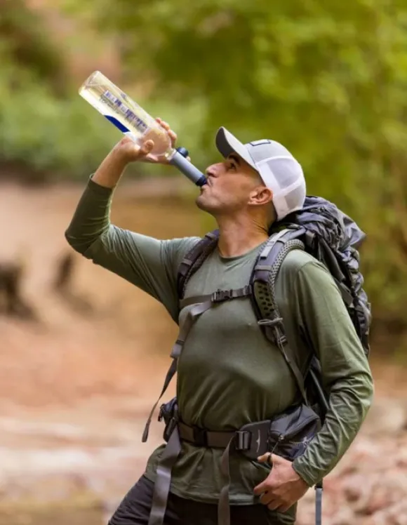 LifeStraw Peak Series Solo -vedenpuhdistin on ultrakevyt ja kompakti kannettava vedenpuhdistusyksikkö, joka poistaa bakteerit, loiset, mikromuovit, lietteen, hiekan ja sameuden juomavedestä.