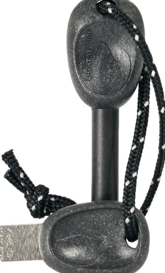 Kipinänkestävä magnesiumseos. Vahva nailonnauha. Kahva biopohjaisesta muovista. Ruostumaton ja erikoiskarkaistu teräksinen raapaisija. Jätteetön tapa varmistaa tulenteko yhä uudelleen ja uudelleen.
