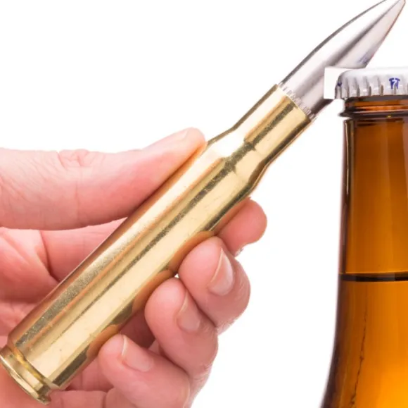 Tämä Lucky Shotin pullonavaaja on tehty aidosta hylsystä ja sillä on helppo avata korkilliset pullot.